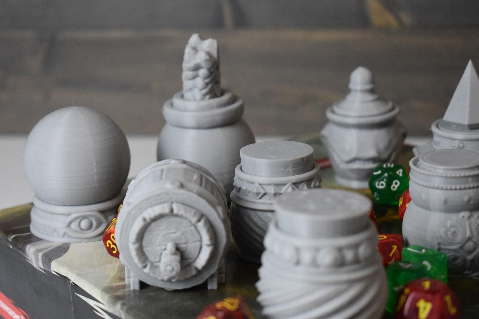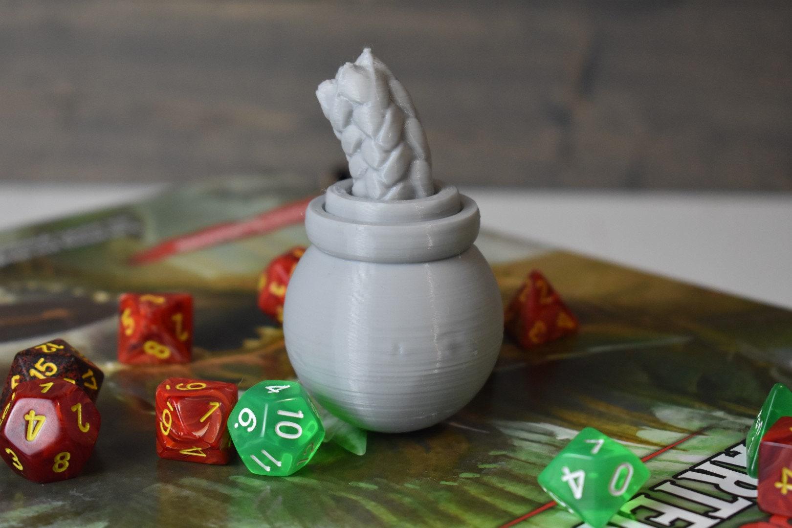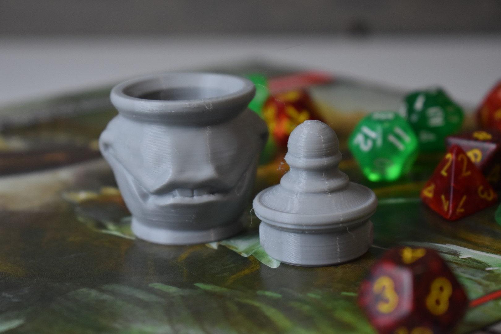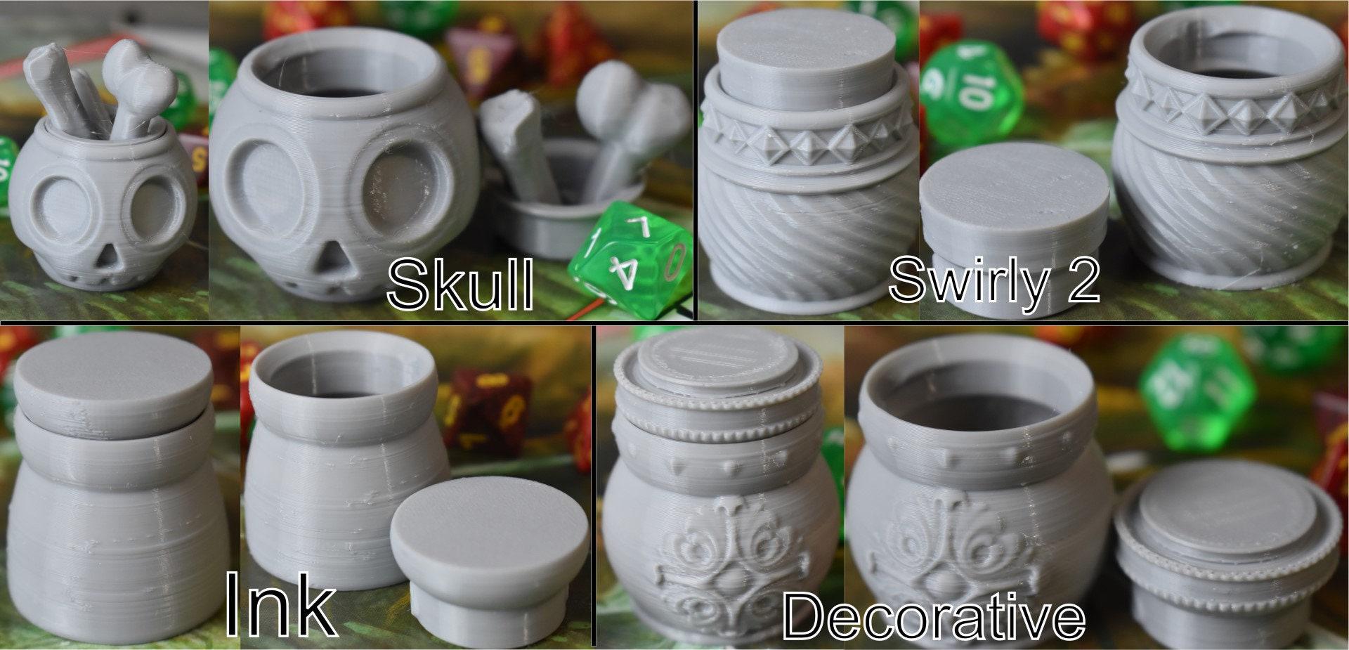 All of the pots, potions or bombs have a removable lid with a twist top and all are made to order. These little guys can be used for just about anything. Cosplay. Décor. Enhancing your D&D experience. Storage. They come unpainted and ready for your own customization.