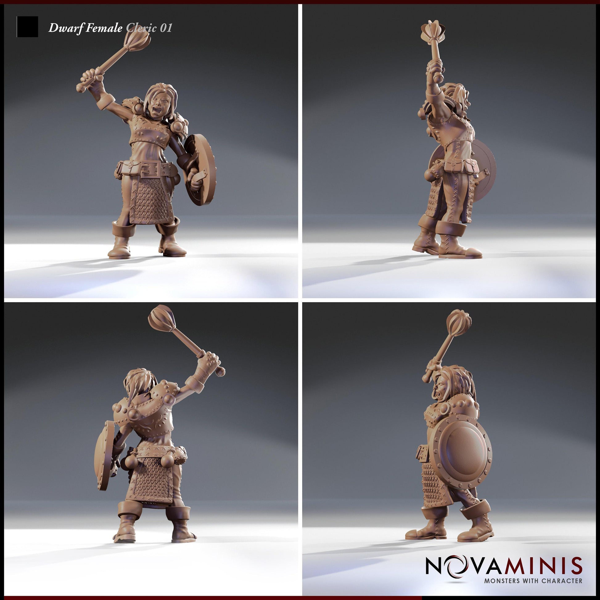 This dwarf female cleric can be a great hero for any tabletop rpg or a great proxy piece in your favorite fantasy themed wargame!