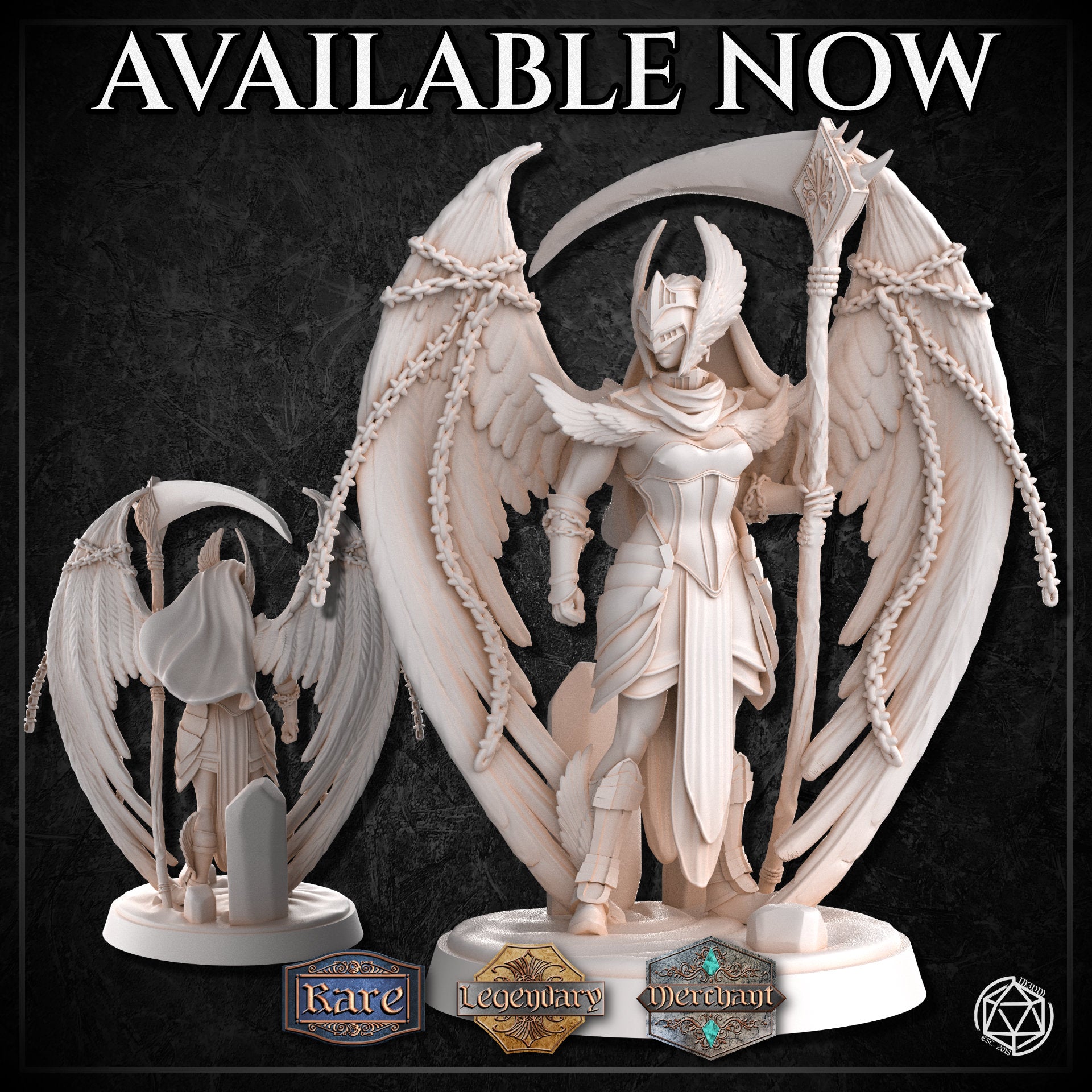 Her wings, once proud and radiant, are now darker at the tips with a few bent feathers, folded casually behind her like she’s trying not to make a big deal out of the whole “exiled from Valhalla” thing. A couple of feathers drift near the base, sculpted mid-fall, because drama follows her whether she wants it to or not.