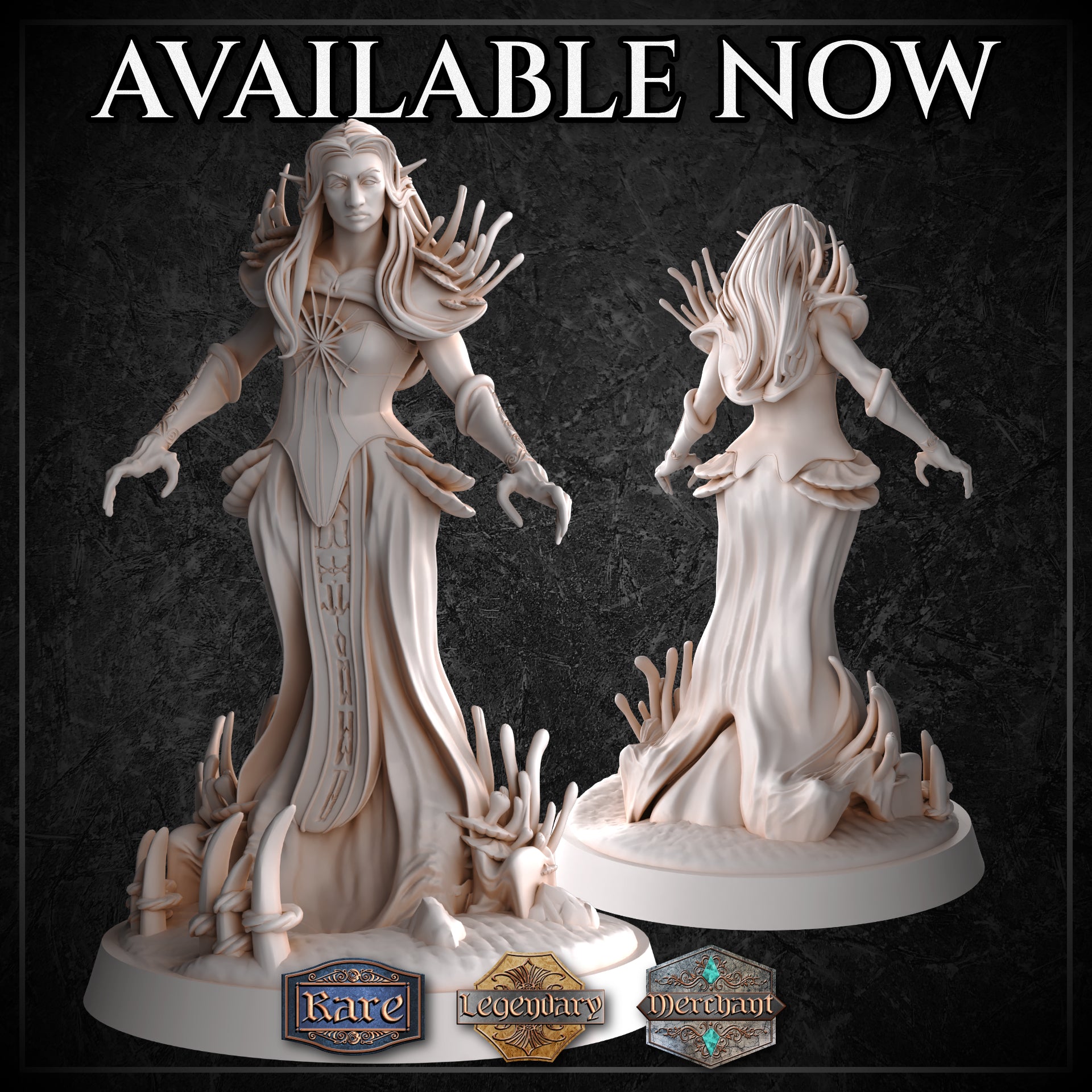 This towering woodland noble looks like she once gave excellent herbal tea recommendations and now gives eternal darkness instead. Her broad, powerful firbolg frame is wrapped in flowing, old-world garments — layered cloaks, fitted leather, and subtle forest ornamentation that hint at her druidic past… before the whole “undead aristocracy” career pivot.