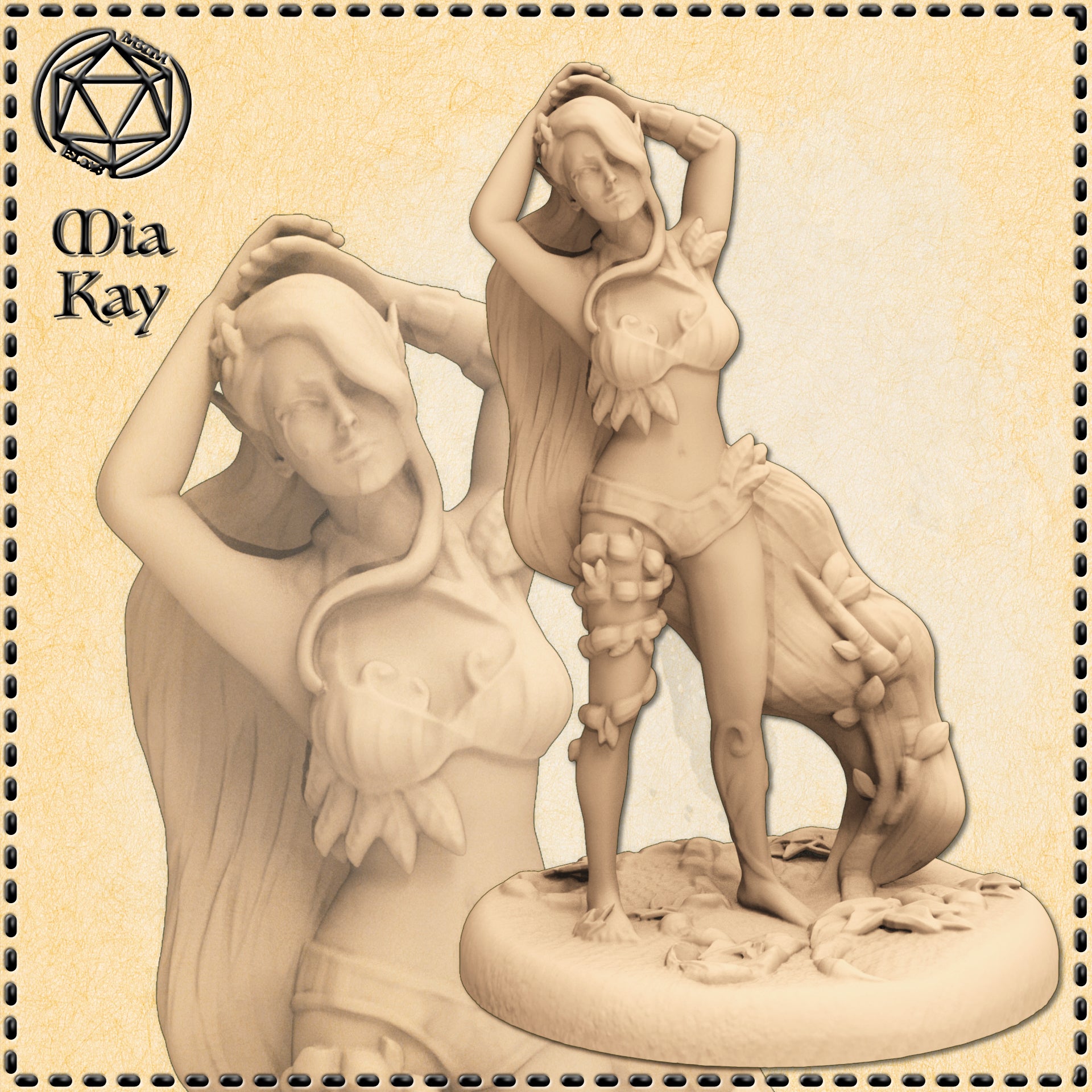 This graceful woodland spirit looks like she stepped out of a sunbeam and decided to stay. Her form is lithe and elegant, with skin that seems kissed by dappled light — smooth in places, faintly bark-textured in others, like she’s halfway between woman and willow.