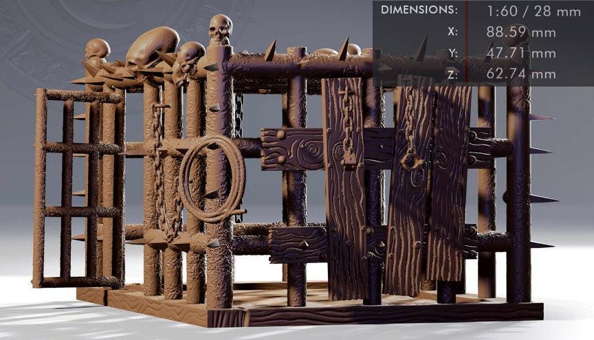 This slave cage is great for any tabletop rpg or a great proxy piece in your favorite fantasy themed wargame!