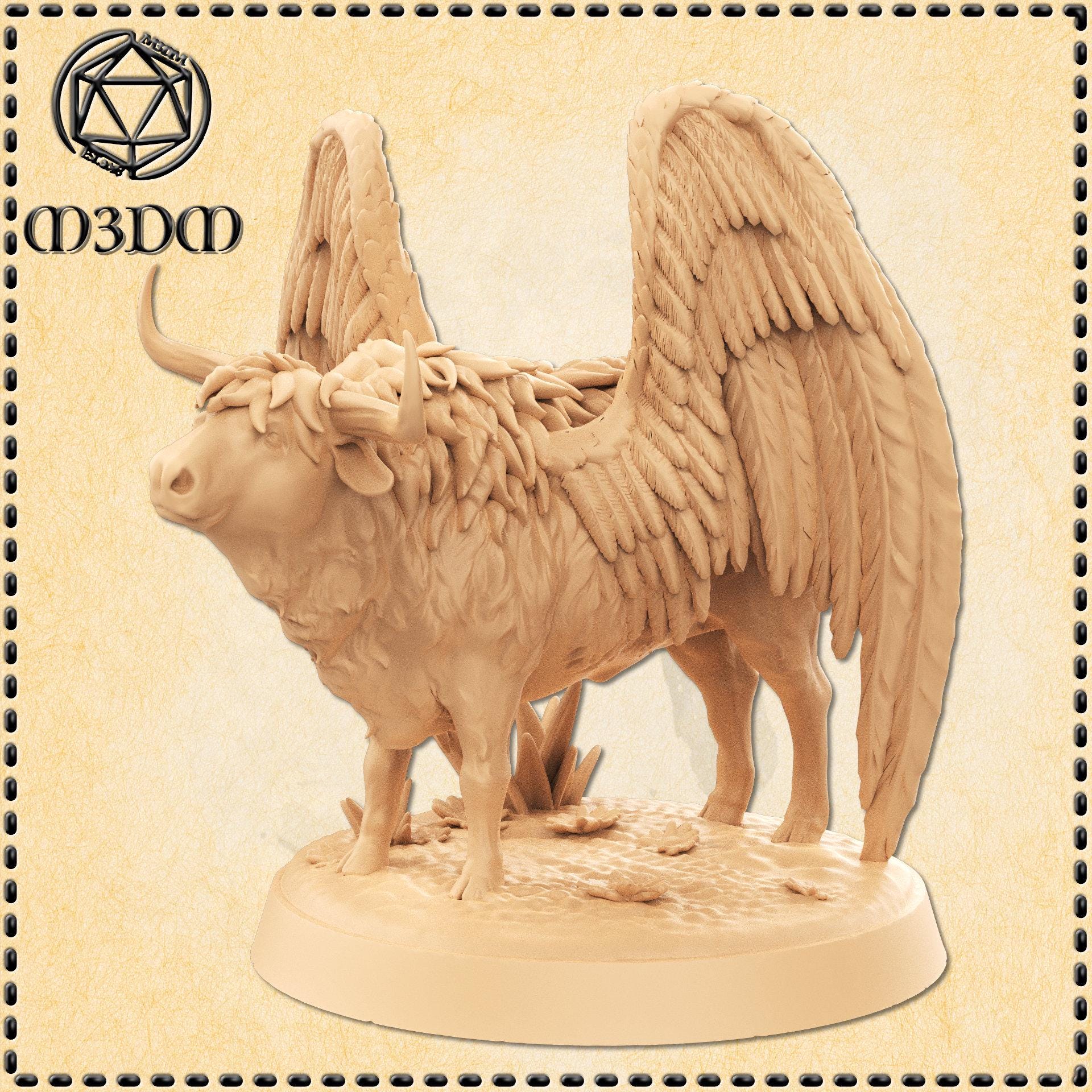 Behold the majestic fluff of legend—the Winged Highland Cow! Part majestic beast, part bovine dream, and all heart, this flying fluffball is ready to soar straight into your campaign. Whether it's a celestial companion, Feywild mount, or just a magical moo with moves, this miniature adds whimsy and wonder to any tabletop RPG.